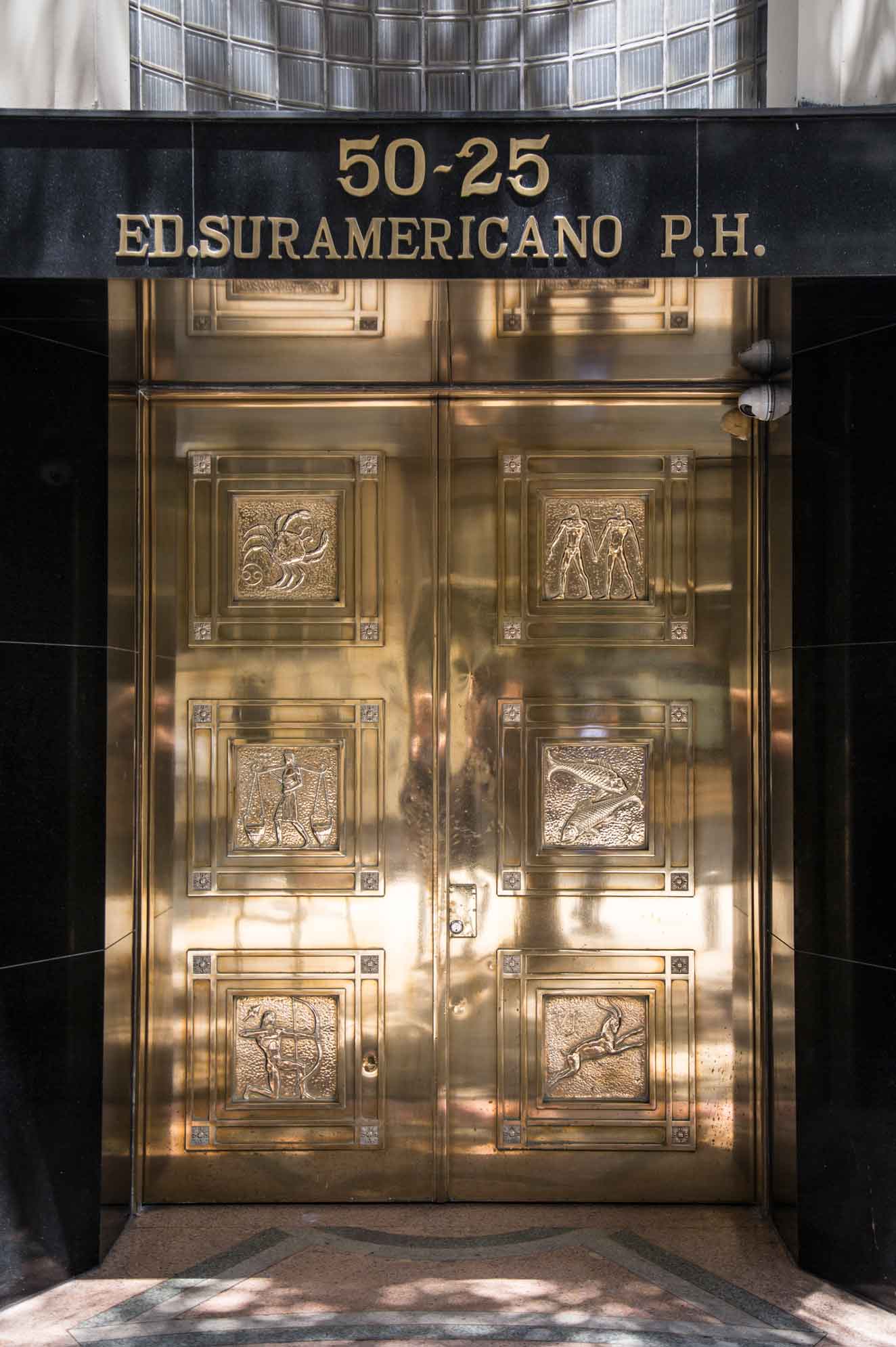 Las alas altas, gruesas y pesadas de la puerta del Edificio Suramericano de Seguros se cerraron antes del fin de la jornada laboral a petición del guía que conducía una tropa de turistas por Carabobo, entre Colombia y Boyacá. El brillo del bronce iluminó los rostros de los excursionistas cuando se acercaron a mirar los enigmáticos grabados de figuras zodiacales y se enteraban de que hace más de medio siglo, en ese agitado y azaroso sector, surgió una poderosa arquitectura empresarial y bancaria que transformó la imagen de la provinciana Medellín.