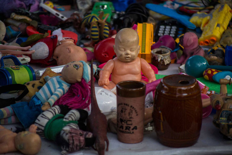 muñecos y cachivaches. Al amanecer se encuentran el reciclador y el comerciante callejero, el primero le vende al segundo su atao, como quien vende una casa a puerta cerrada, una lotería en caja o costal.